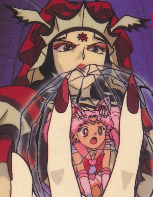This is when sailor moon got hurt from Galixia and Chibi Chibi is tempted to use her light of hope in her. |